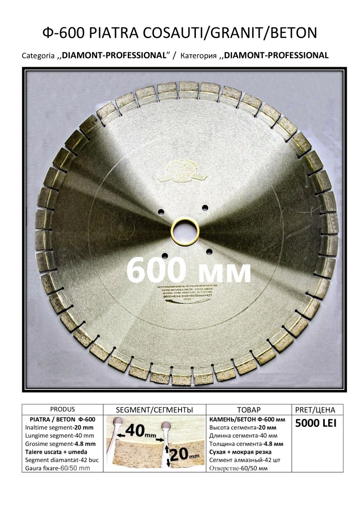 Диск отрезной для камня 600 мм - 5000 лей